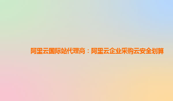 阿里云國際站代理商:阿里云企業(yè)采購云安全劃算