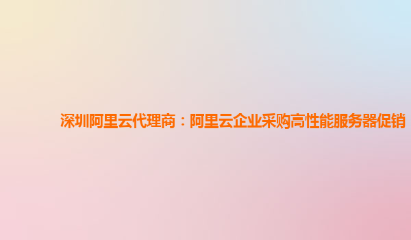 深圳阿里云代理商:阿里云企業(yè)采購高性能服務(wù)器促銷