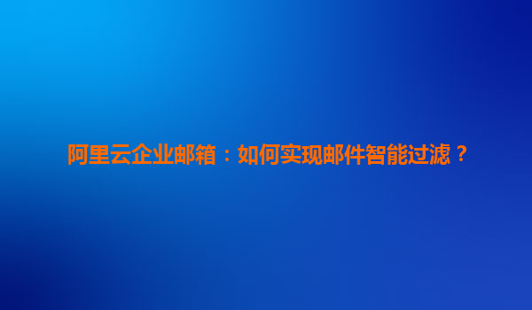 阿里云企業(yè)郵箱:實(shí)現(xiàn)郵件智能過(guò)濾的優(yōu)勢(shì)與方法