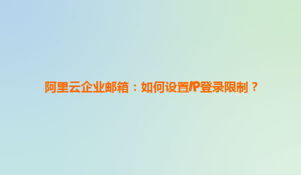 阿里云企業(yè)郵箱:如何設(shè)置IP登錄限制
