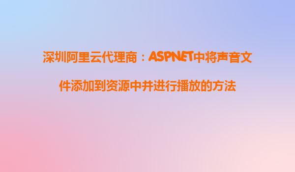 在ASP.NET中將聲音文件添加到資源中并進行播放:結(jié)合阿里云的優(yōu)勢與使用方法