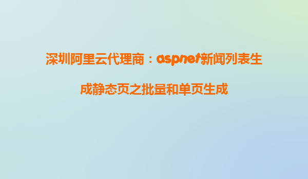 深圳阿里云代理商:ASP.NET新聞列表生成靜態(tài)頁之批量和單頁生成