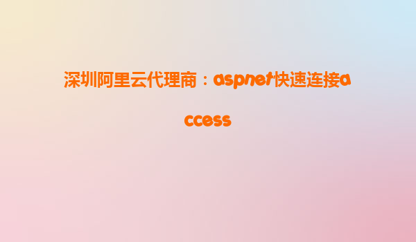 深圳阿里云代理商:ASP.NET快速連接Access