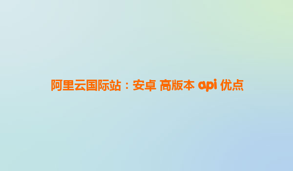 阿里云國際站:Android 高版本 API 的優(yōu)點與阿里云的優(yōu)勢