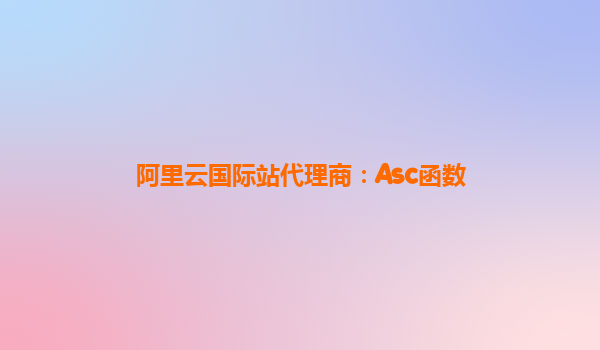 阿里云國際站代理商:利用Asc函數(shù)探索阿里云的優(yōu)勢與好用之處