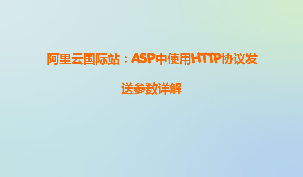 阿里云國(guó)際站:ASP中使用HTTP協(xié)議發(fā)送參數(shù)詳解