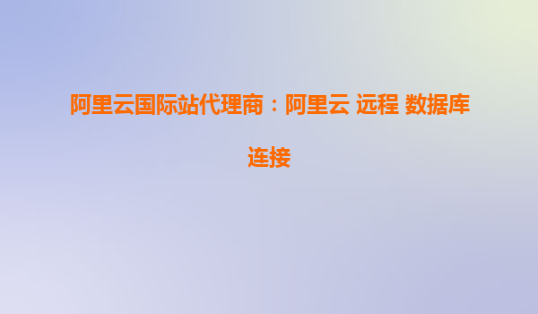 阿里云國際站代理商:阿里云遠程數(shù)據(jù)庫連接優(yōu)勢分析