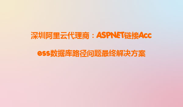 深圳阿里云代理商:ASPNET鏈接Access數(shù)據(jù)庫路徑問題最終解決方案