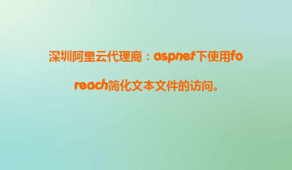 在ASP.NET中使用foreach簡(jiǎn)化文本文件的訪問與阿里云的優(yōu)勢(shì)