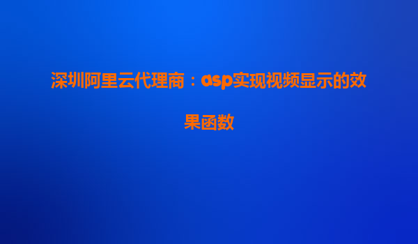 深圳阿里云代理商:ASP實(shí)現(xiàn)視頻顯示的效果函數(shù)