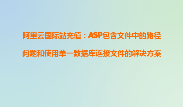 隨著互聯(lián)網(wǎng)技術(shù)的不斷發(fā)展,云計(jì)算已成為各類企業(yè)和開發(fā)者不可或缺的工具。在云計(jì)算市場中,阿里云憑借其強(qiáng)大的技術(shù)實(shí)力和豐富的產(chǎn)品種類,已成為全球領(lǐng)先的云服務(wù)提供商之一。阿里云國際站為全球用戶提供了更加便捷、高效、安全的云服務(wù),其中包括靈活的充值方式、完善的技術(shù)支持和高性能的云計(jì)算能力。本文將結(jié)合阿里云國際站充值過程中可能遇到的問題,特別是ASP包含文件中的路徑問題,以及如何使用單一數(shù)據(jù)庫連接文件來解決相關(guān)問題,幫助開發(fā)者更好地應(yīng)對(duì)云計(jì)算開發(fā)中的挑戰(zhàn)。