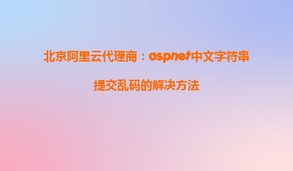 北京阿里云代理商:ASP.NET中文字符串提交亂碼的解決方法