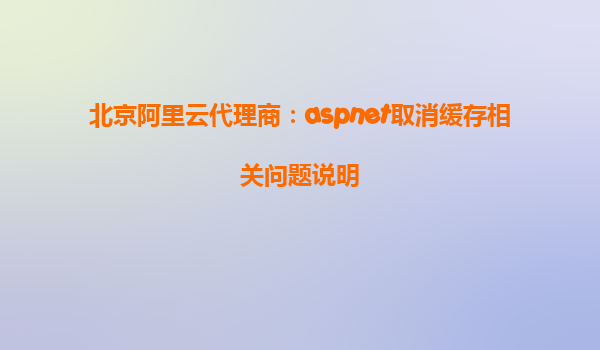 北京阿里云代理商:ASP.NET取消緩存相關(guān)問(wèn)題說(shuō)明