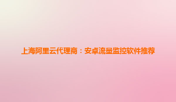 上海阿里云代理商:安卓流量監(jiān)控軟件推薦