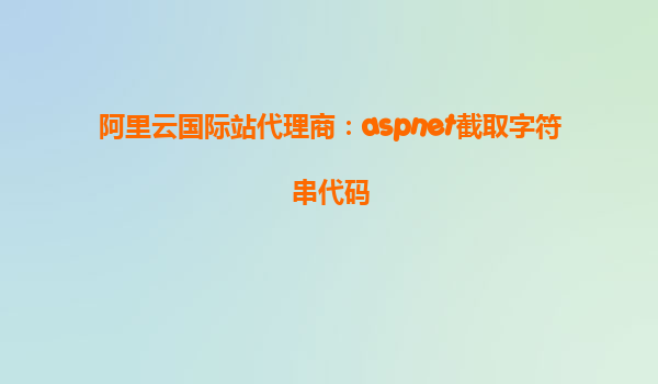 阿里云國際站代理商:ASP.NET截取字符串代碼與阿里云優(yōu)勢分析