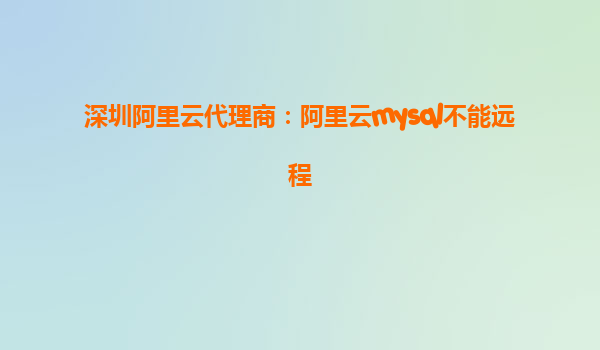 深圳阿里云代理商:阿里云MySQL不能遠(yuǎn)程的解決方案