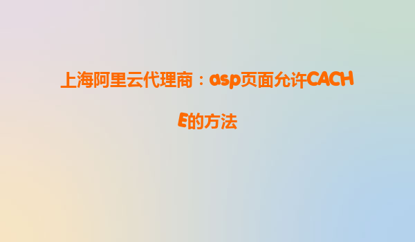 上海阿里云代理商:ASP頁(yè)面允許CACHE的方法