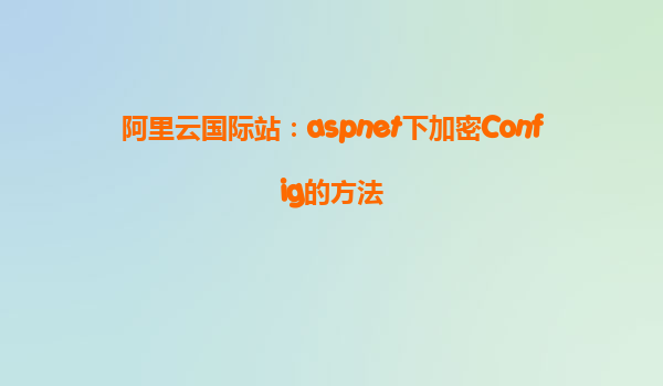 阿里云國際站:ASP.NET 下加密 Config 的方法及優(yōu)勢