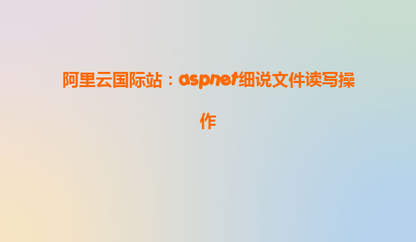 阿里云國際站:ASP.NET細(xì)說文件讀寫操作