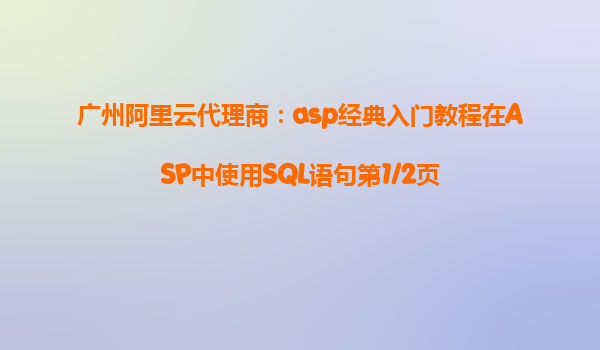 廣州阿里云代理商:ASP經(jīng)典入門教程在ASP中使用SQL語句第1/2頁