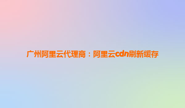 廣州阿里云代理商:阿里云CDN刷新緩存