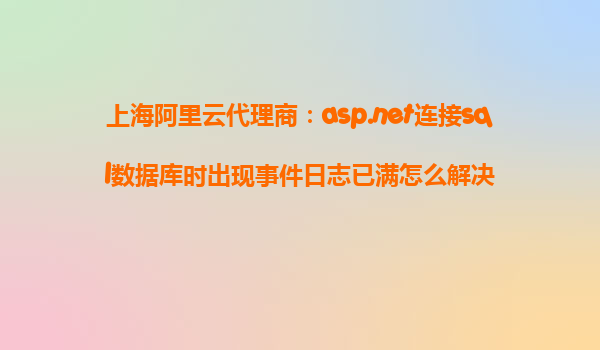 上海阿里云代理商:ASP.NET連接SQL數(shù)據(jù)庫時(shí)出現(xiàn)事件日志已滿怎么解決