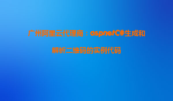 廣州阿里云代理商:ASP.NET C#生成和解析二維碼的實例代碼