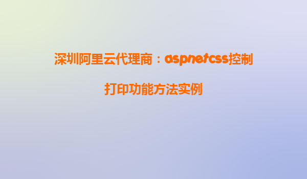 深圳阿里云代理商:ASP.NET CSS 控制打印功能方法實(shí)例