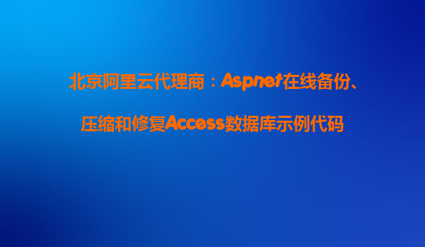 北京阿里云代理商:Aspnet在線備份、壓縮和修復Access數(shù)據(jù)庫示例代碼