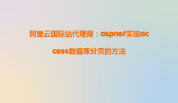 ASP.NET實現(xiàn)Access數(shù)據庫分頁的方法——結合阿里云國際站代理商優(yōu)勢