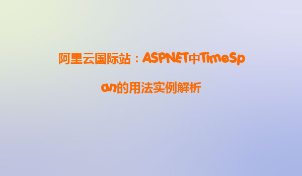 阿里云國際站:ASPNET中TimeSpan的用法實例解析