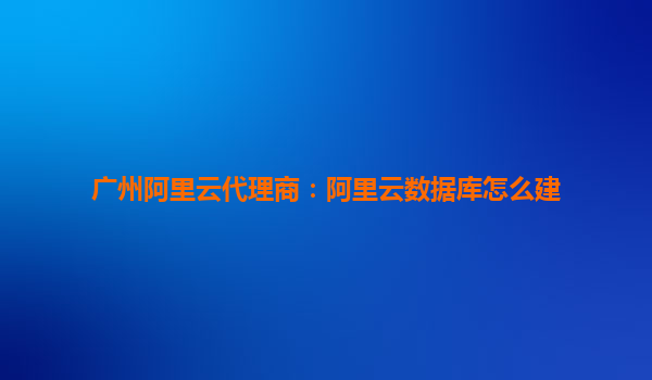 廣州阿里云代理商:如何建立阿里云數(shù)據(jù)庫
