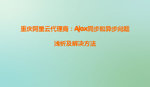 重慶阿里云代理商:Ajax同步和異步問題淺析及解決方法