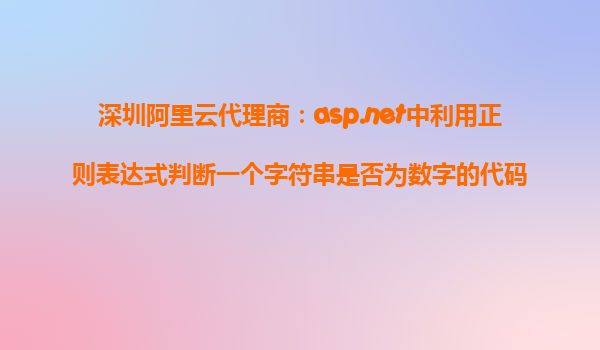 在現(xiàn)代軟件開(kāi)發(fā)中,數(shù)據(jù)驗(yàn)證是一個(gè)非常重要的環(huán)節(jié)。在ASP.NET中,利用正則表達(dá)式來(lái)判斷一個(gè)字符串是否為數(shù)字是一個(gè)常見(jiàn)的需求。本文將詳細(xì)介紹如何在ASP.NET中使用正則表達(dá)式進(jìn)行數(shù)字驗(yàn)證,并結(jié)合深圳阿里云代理商的優(yōu)勢(shì),幫助開(kāi)發(fā)者更好地理解和應(yīng)用這一技術(shù)。