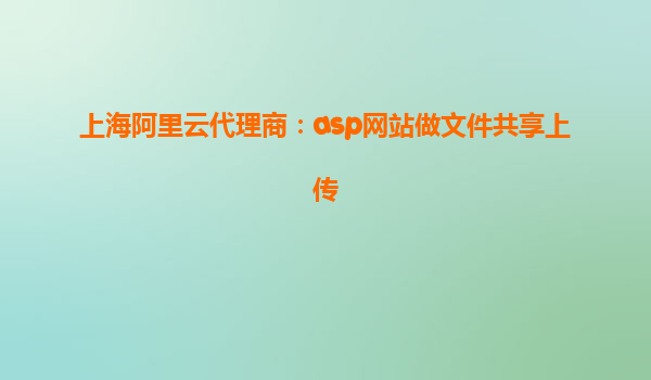 上海阿里云代理商:ASP網(wǎng)站做文件共享上傳