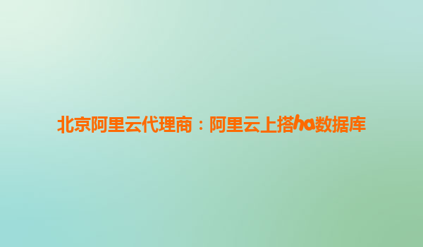 如何在阿里云上搭建HA數(shù)據(jù)庫(kù)