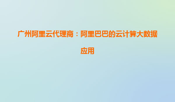 廣州阿里云代理商:阿里巴巴的云計算大數據應用