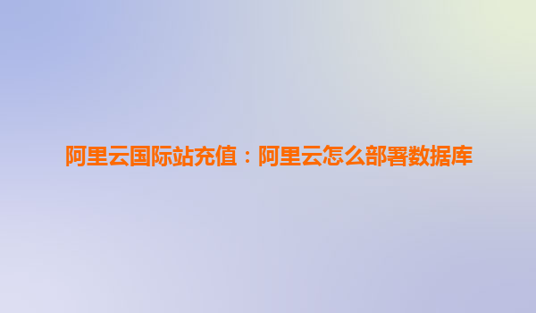 阿里云國(guó)際站充值:阿里云數(shù)據(jù)庫部署優(yōu)勢(shì)與操作指南