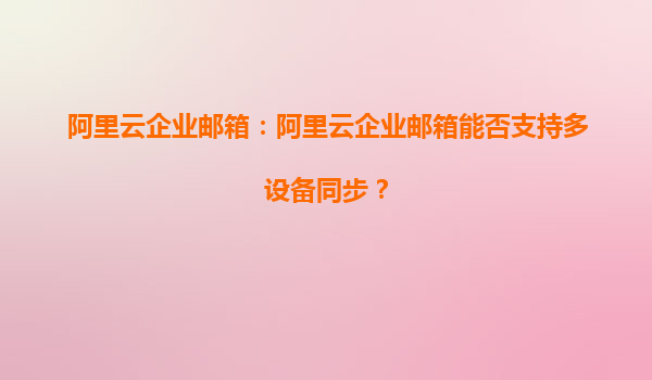 阿里云企業(yè)郵箱:阿里云企業(yè)郵箱能否支持多設(shè)備同步?