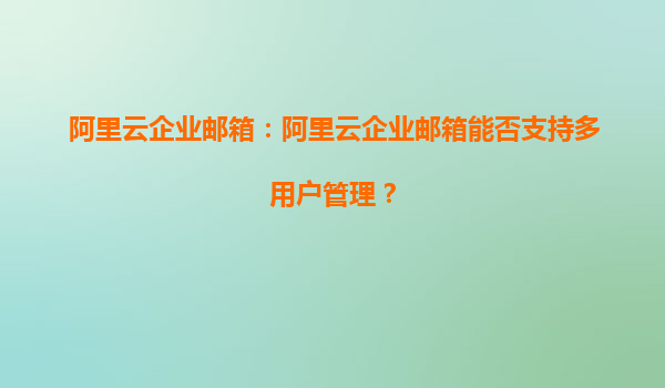 阿里云企業(yè)郵箱:支持多用戶管理,提升企業(yè)辦公效率