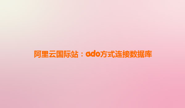 阿里云國際站ADO方式連接數(shù)據(jù)庫指南