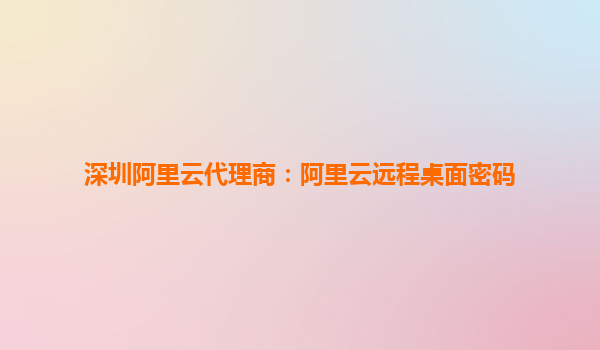 深圳阿里云代理商:阿里云遠程桌面密碼