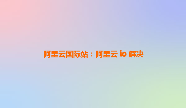 阿里云國際站:阿里云 IO 解決方案