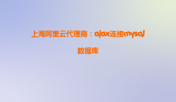 上海阿里云代理商:Ajax連接MySQL數(shù)據(jù)庫(kù)