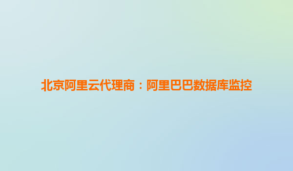 北京阿里云代理商:阿里巴巴數(shù)據(jù)庫監(jiān)控