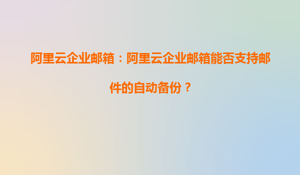阿里云企業(yè)郵箱:支持郵件自動(dòng)備份的優(yōu)勢(shì)與便捷