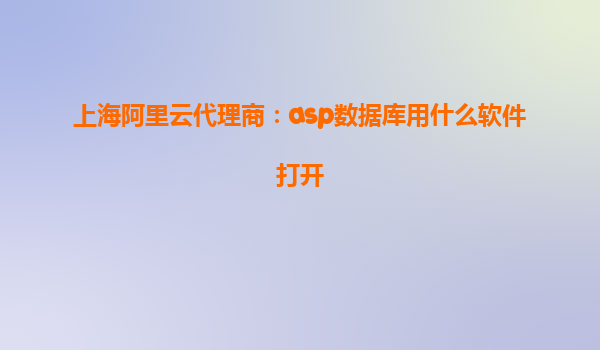 上海阿里云代理商:ASP數(shù)據(jù)庫(kù)用什么軟件打開(kāi)