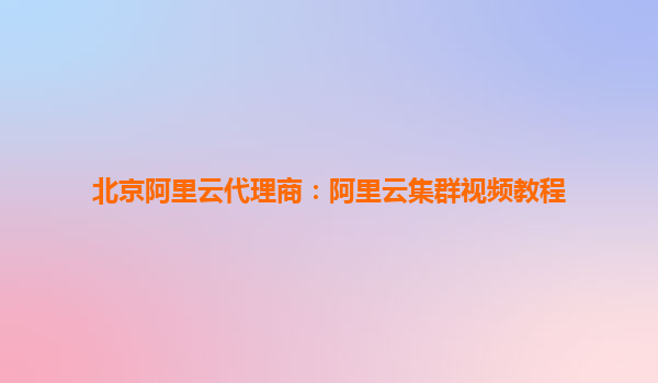 阿里云集群視頻教程:讓您的云計算之旅更加輕松高效
