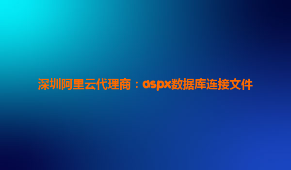 深圳阿里云代理商:ASPX數(shù)據(jù)庫(kù)連接文件