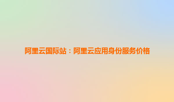 阿里云國際站:阿里云應(yīng)用身份服務(wù)價格與優(yōu)勢解析